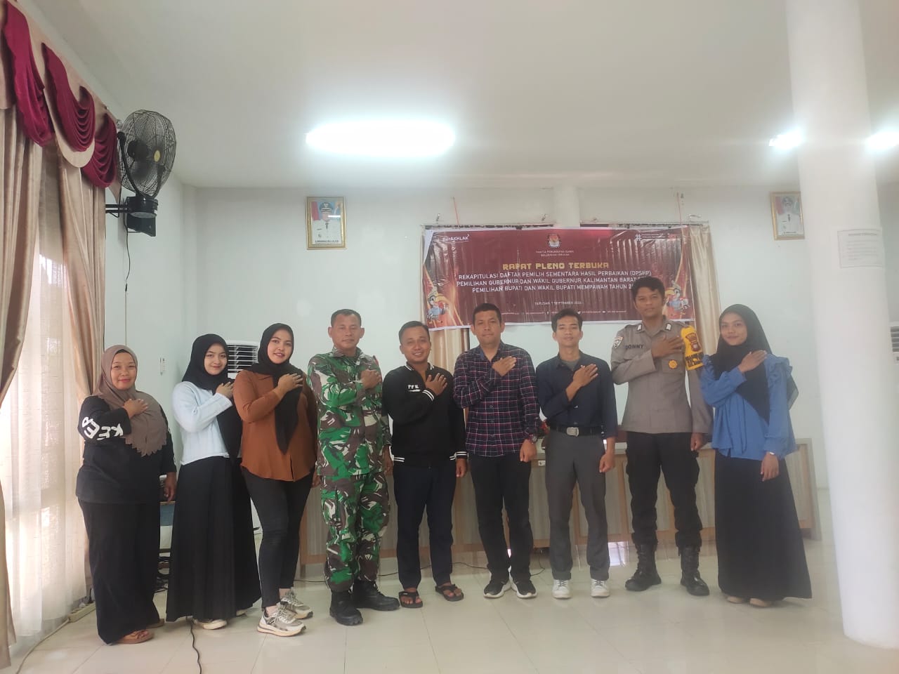 Mempawah Hilir, Babinsa Koramil 1201-03/Mempawah Hilir Kodim 1201/Mempawah Sertu Agus Ibrahim menghadiri rapat pleno terbuka rekapitulasi daftar pemilih sementara hasil perbaikan (DPSHP) untuk Pilkada Tahun 2024 di Aula Kantor Kelurahan Terusan, Kecamatan Mempawah Hilir, Minggu (08/09/2024).