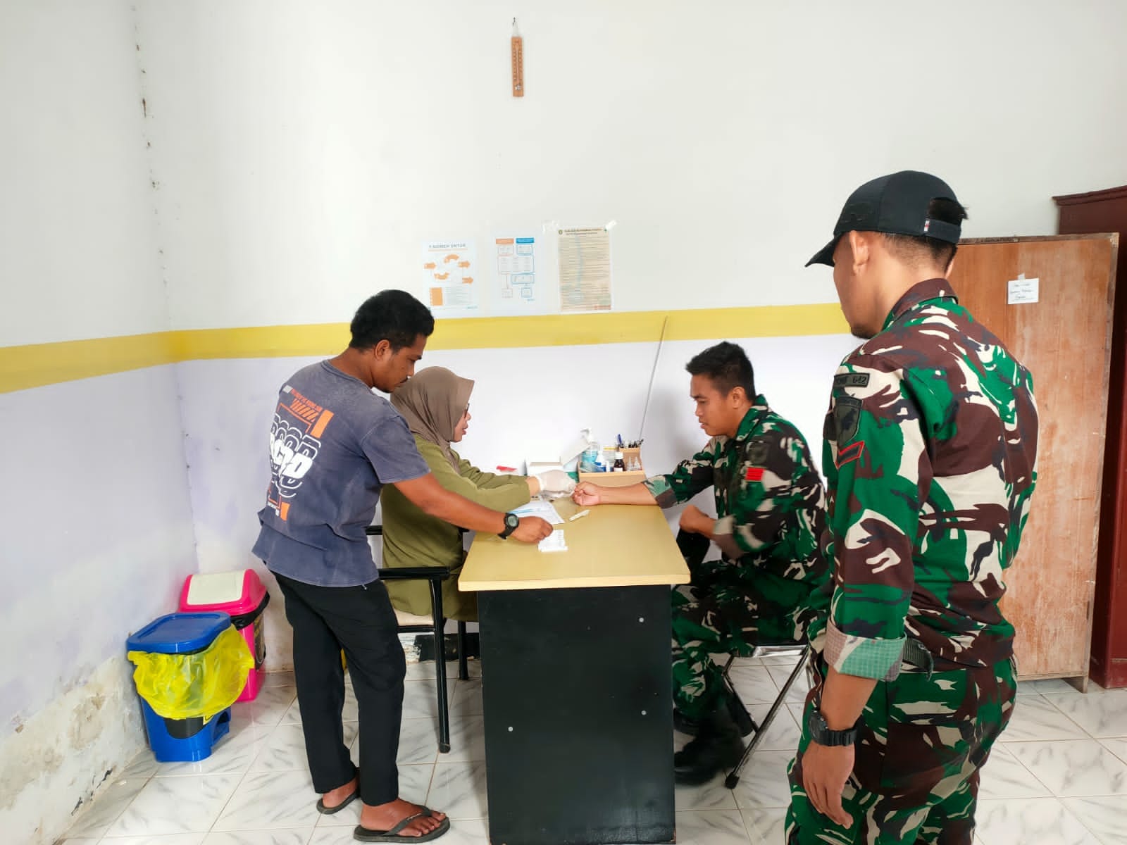 Pemeriksaan kesehatan yang difasilitasi oleh Puskesmas Kampung Bofuwer, Distrik Teluk Arguni pada Minggu (06/10/2024). guna mengantisipasi adanya penyakit malaria disaat para prajurit melaksanakan penugasan. Pemeriksaan kesehatan tersebut berupa pengambilan sampel darah.