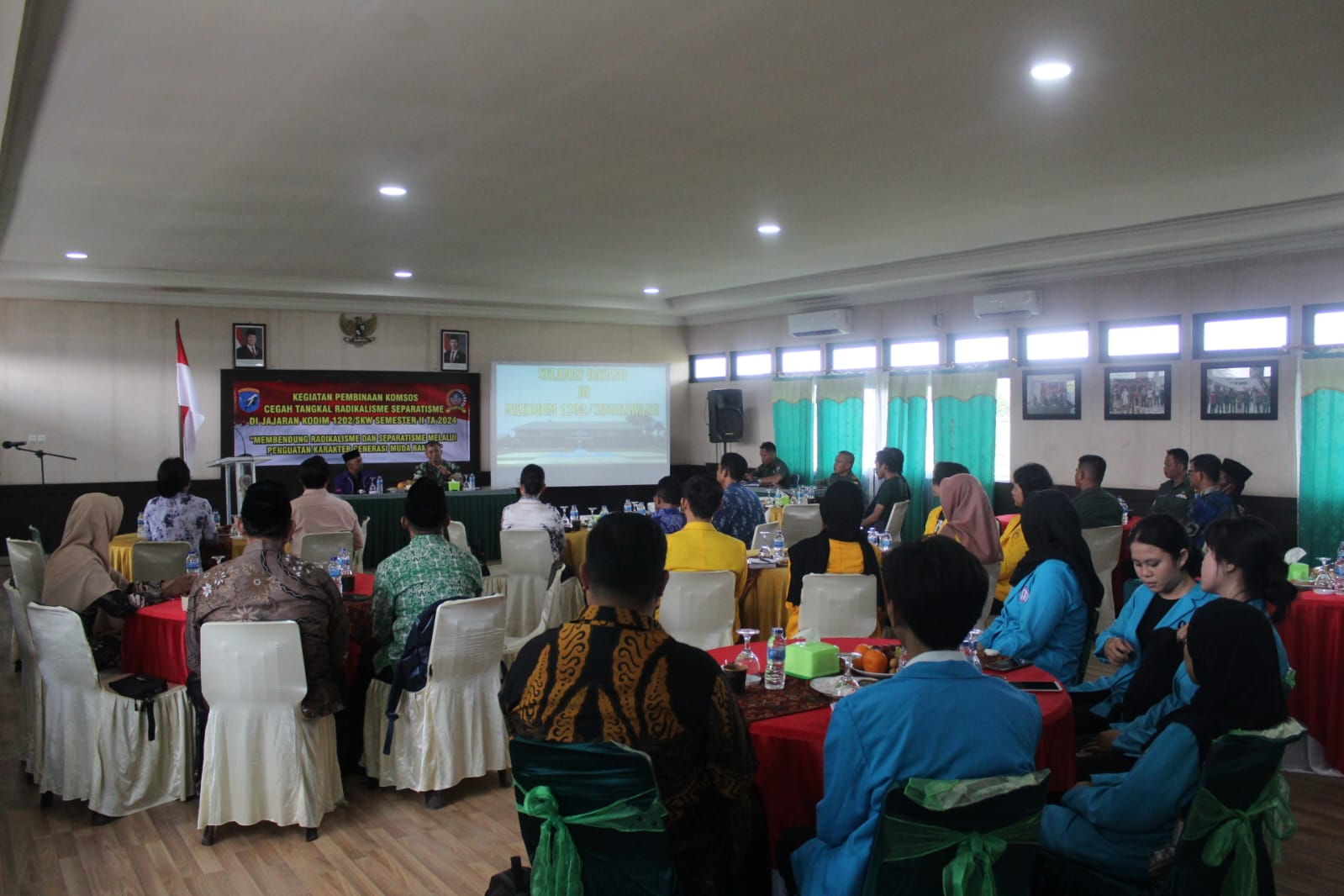 Mewakili Dandim 1202/Singkawang, Letkol Arm Ferdy Pongsamma R., S.H., Kasdim 1202/Singkawang, Mayor Inf Sugiyono membuka kegiatan pembinaan Komsos, Dengan mengambil tema “Membendung Radikalisme Dan Separatisme Melalui Penguatan Karakter Generasi Muda Bangsa”.
