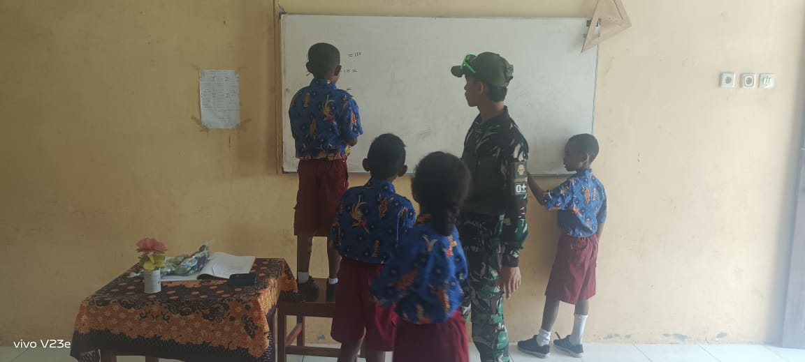 Tinta Rakyat Nusantara.Com, Fak Fak – Dalam kondisi Kekurangan Tenaga Pengajar di SD Impres Kramongmongga dan kurangnya peralatan mengajar serta buku Buku yang Kurang memadai, maka menjadi tugas kami Satgas Yonif 642/Kps yang saat ini bertugas di wilayah Distrik Kramongmongga untuk memberikan Pendidikan tambahan yang meliputi Pengetahuan Kewarganegaraan, Membaca dan Menghitung Kepada Anak anak SD Inpres Kramongmongga di Wilayah Distrik Kramongmongga, Kabupaten Fak Fak, Papua Barat. (29/10/2024).
