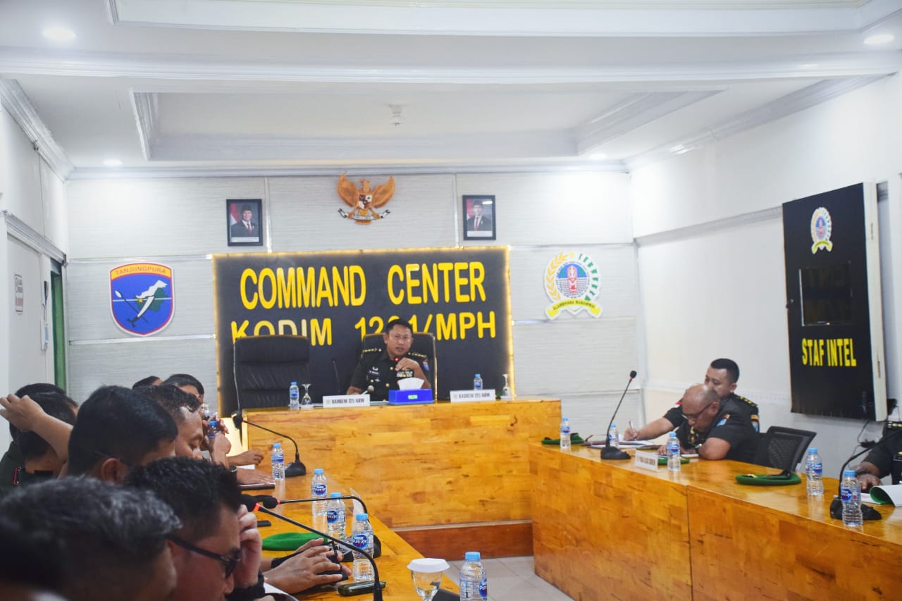 Mempawah – Kepala Staf Korem 121/Abw (Kasrem 121/Abw) menerima paparan kesiapan pelaksanaan TMMD ke-125 Kodim jajaran Korem 121/Abw, bertempat di Ruang Data Kodim 1201/Mempawah, Kalimantan Barat, Minggu (15/06/2025).