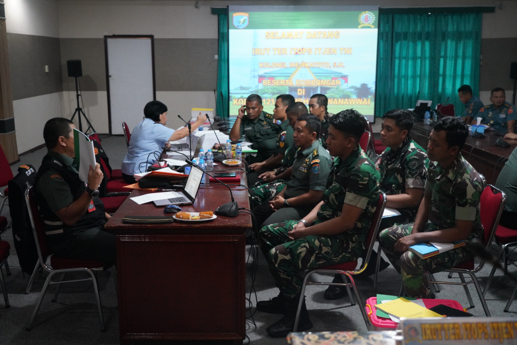 Kolonel Inf Akatoto, S.H., selaku Irut Ter Itops Itjen TNI mengungkapkan kehadirannya bersama tim dalam rangka melaksanakan audit kinerja serta ketaatan khususnya satuan Korem 121/Abw serta jajaran.